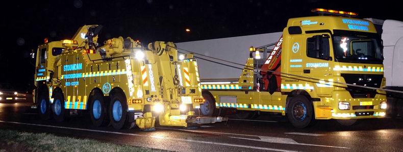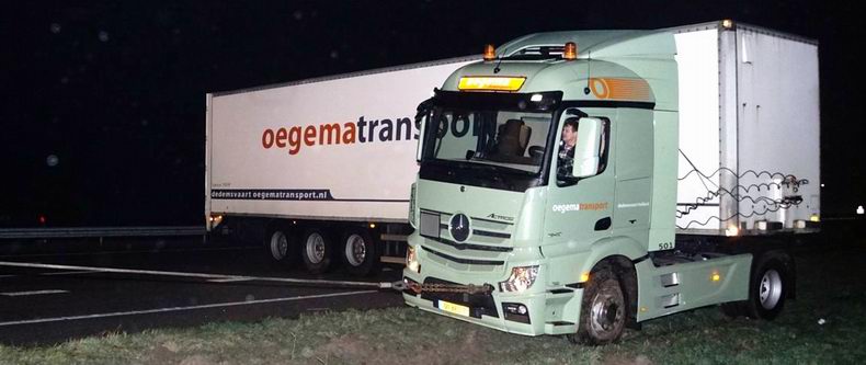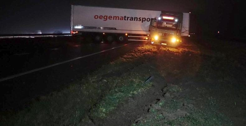 | Op de A37 ter hoogte van Hotel Emmen zijn dinsdagavond twee Bulgaarse trekkers met oplegger geschaard. De eerste liep een lek in de brandstoftank op en belandde in de berm aan de rechterzijde van de weg. De tweede schoot tegen de vangrail in de middenberm en kwam overdwars op beide rijbanen tot stilstand. De brandweer van Emen moest het brandstoflek verhelpen. De tank werd provisorisch gedicht, maar bij het lostrekken uit de berm begon hij weer te lekken. Het bergen van deze vrachtwagen kon pas gebeuren, nadat de tank was leeggehaald. Ondertussen begon berger Kraal uit Hoogeveen met de tweede vrachtwagen. Niemand raakte gewond. Er ontstond een file van 10 kilometer. Het verkeer werd vanaf de A37 omgeleid. Woensdag vanaf 05:00 uur regende het ongevallen, waarbij soms trucks betrokken waren, o.a. op de A28 ten N van Zwolle bij P de Markte en bij Rouveen. Ook ANWB Verkeer meldde op Twitter om 06:30 uur een groot aantal ongevallen op de A28 tussen Zwolle en Hoogeveen in beide rijrichtingen. |