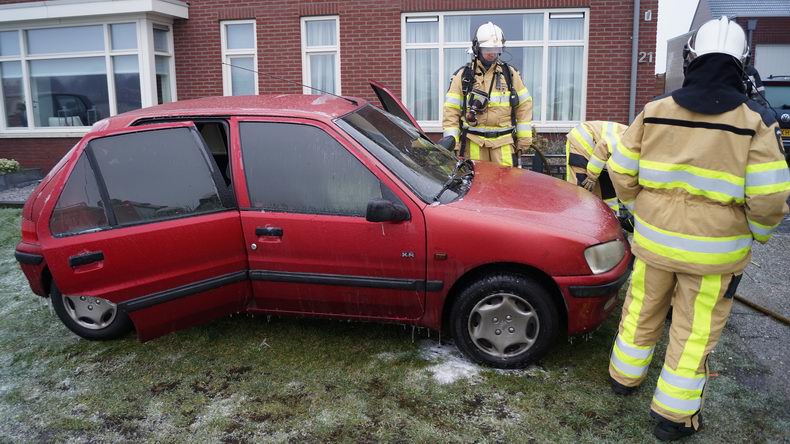 | De zesde dag van het nieuwe jaar had voor de eigenaar van een Peugeot 106 een vervelende verrassing in petto. Toen hij vanuit de huiskamer naar buiten keek, ontdekte hij dat er in het interieur van zijn auto brand woedde. Hij had 's morgens na een oriënterend ritje door de buurt besloten vanwege de gladheid niet meer te gaan rijden en parkeerde de auto voor het huis, waar de wagen uren later begon te branden. De Dedemsvaartse brandweer spoedde* zich zo goed en kwaad als dat ging naar de spiegelgladde Holvastwerf, maar de eigenaar had de vlammen zelf al weten te doven, voordat de auto uit kon branden. De brandweer hoefde alleen te controleren en voor de zekerheid na te blussen. Hoewel alleen het dashboard en de voorruit verwoest werden, kan de auto gezien de leeftijd als onherstelbaar beschouwd worden. Het was de tweede Peugeot, die deze dag in brand vloog. *Bij het wegrijden verried een ratelend geluid onder de tankautospuit, dat de bluswagen met Rotogrip (roterende sneeuw- en ijskettingen) uitgerust was, die vanuit de cabine bediend kunnen worden... |