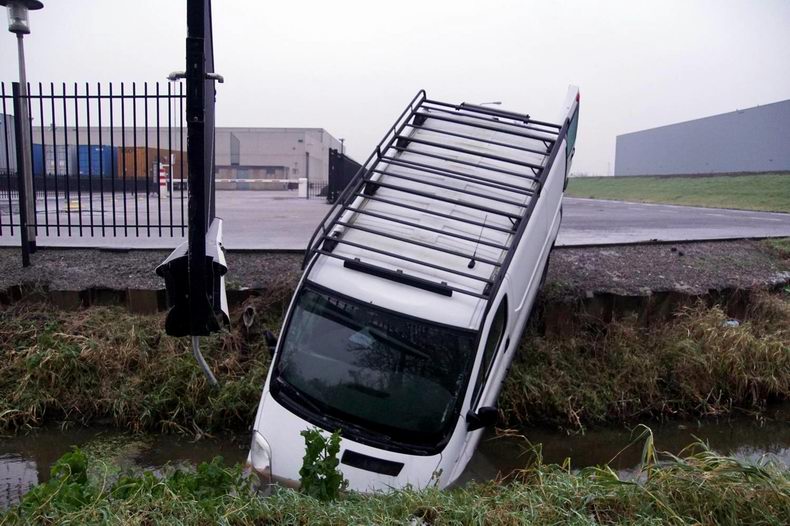 Een bestelbus is woensdagmorgen van de Randweg een sloot in geslipt. |