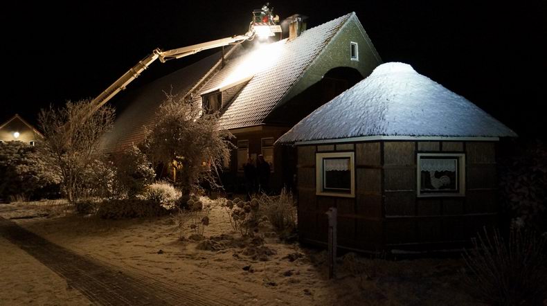 | In de nacht van zaterdag op zondag werd rond half twaalf brand gemeld in een woning aan het Rheezerend in Dedemsvaart. Het bleek echter te gaan om een felle schoorsteenbrand in een vrijstaande woonboerderij aan de overzijde, maar niet om een rieten dak. De Dedemsvaartse brandweer was er ondanks de door de flinke sneeuwval spekgladde wegen vlot bij en nam direct maatregelen om de schoorsteenbrand te doven. Kort daarop arriveerde de hoogwerker uit Hardenberg, die op het erf werd opgesteld om het rookkanaal te kunnen vegen. De jonge bezoekers van een in de schuur bij de woning georganiseerde nieuwjaarsparty bleven er vrolijk onder. |