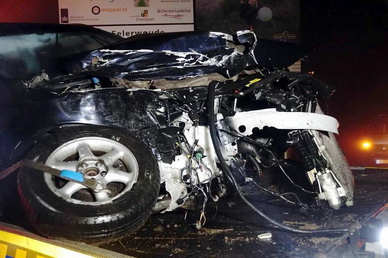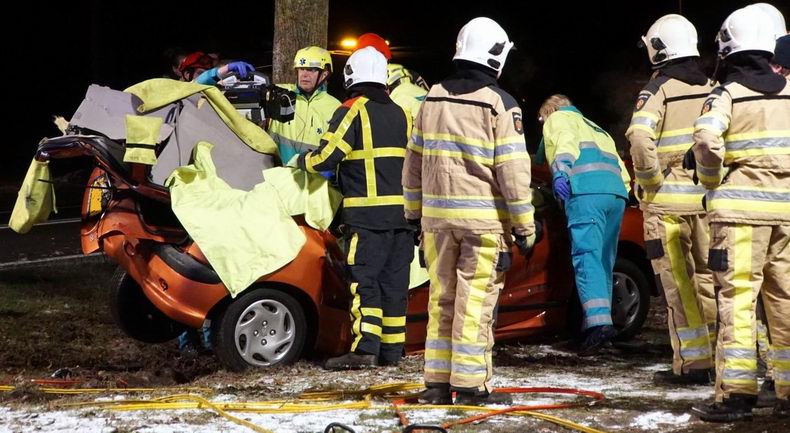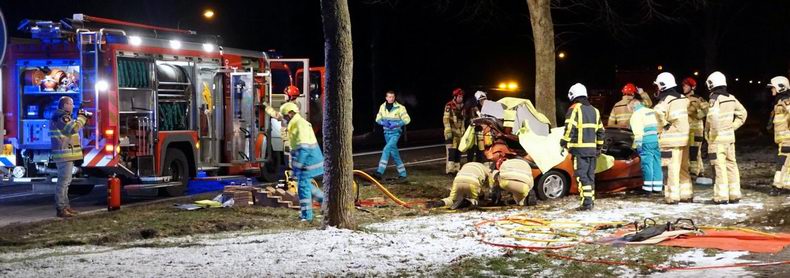 | In de nacht van zaterdag op zondag is op de Ruinerweg bij Echten een VW Golf met de rechtervoorzijde tegen een boom gereden. De auto kwam achterstevoren midden op de weg tot stilstand. De inzittenden -drie jonge mannen (bestuurder van 21 uit De Wijk en twee plaatsgenoten van 18 en 20- zijn bij het ongeval gewond geraakt. Het onverlichte wrak was nauwelijks te zien op deze onverlichte weg. Een automobiliste, die rond half vier haar vriendin naar huis bracht, schrok wel even toen zij zag, waarop zij toe reden. Als eerste werd 112 gebeld en daarna hielpen zij de slachtoffers uit de auto en verleenden eerste hulp. Eén van de dames bleek een doktersassistente. De mannen bekenden te hebben gedronken en konden daarop in de inmiddels gearriveerde politiewagen plaatsnemen in afwachting van medische zorg. De bestuurder kon zijn rijbewijs inleveren en moest een bloedproef ondergaan. Een drietal ambulances werden ingezet ter zorgverlening. De brandweer van Ruinen was ook uitgerukt, maar hoefde weinig meer te doen. Het ongeval is in onderzoek genomen door de dienst VOA van de politie. |