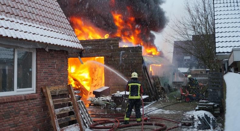 | Hollandscheveld: loods achter pas gebouwde woning brandt volledig af |