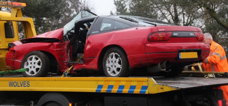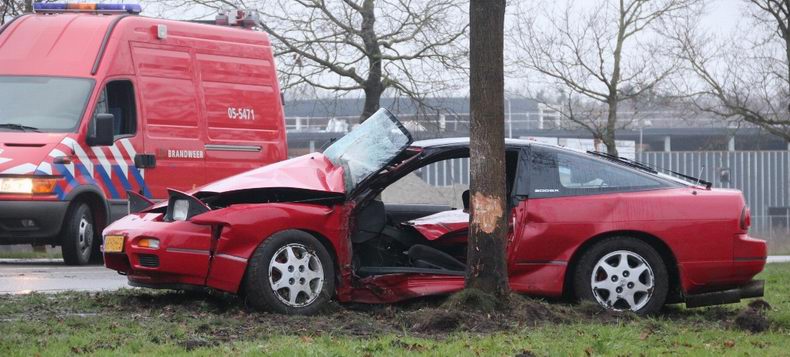 Er bleek rode Nissan 200 SX Turbo in een bocht geslipt te zijn en tegen een boom tot stilstand gekomen. De brandweer heeft de bestuurder uit zijn benarde positie moeten bevrijden door het portier aan de bestuurderszijde te verwijderen. Het slachtoffer is met spoed naar het een ziekenhuis gebracht. De weg was een enige tijd afgesloten voor het verkeer. |