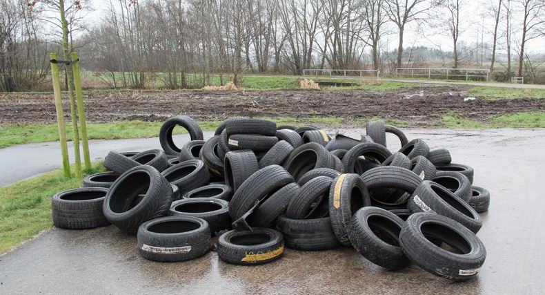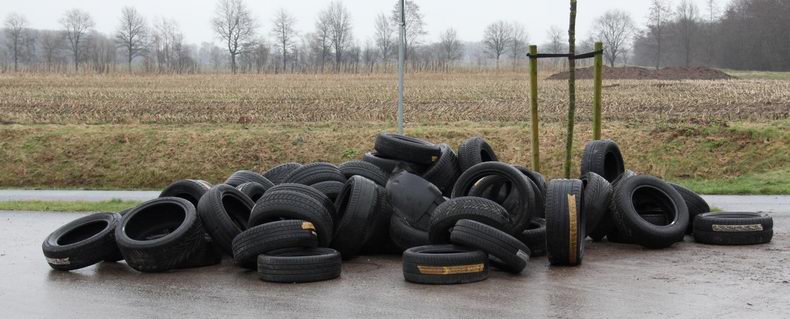 | Waarschijnlijk in de nacht van zaterdag op zondag zijn op het bedrijventerrein Europark bij Coevorden / Laar op de NL-D-grens naar schatting veertig versleten autobanden gedumpt. Uit de opschriften op de banden is op te maken dat ze waarschijnlijk uit Nederland afkomstig zijn. In de grond van de mini-keerrotonde aan een naamloze zijweg van de Brookdiek waren duidelijke bandensporen te zien. |