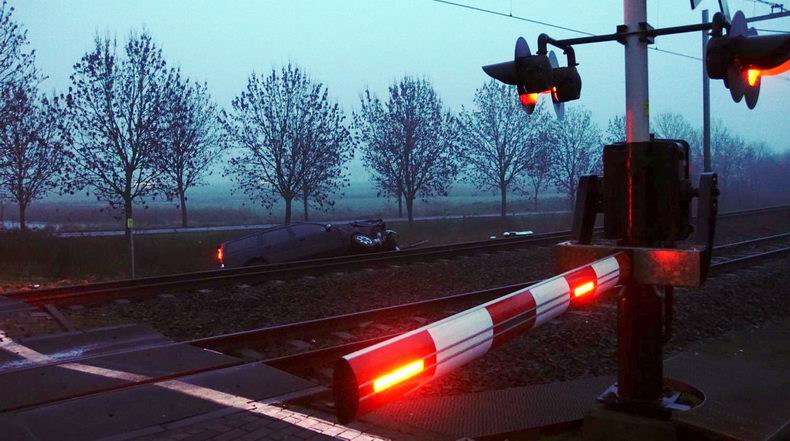 | Meppel: auto strandt op overweg, gezin bijtijds in veiligheid |