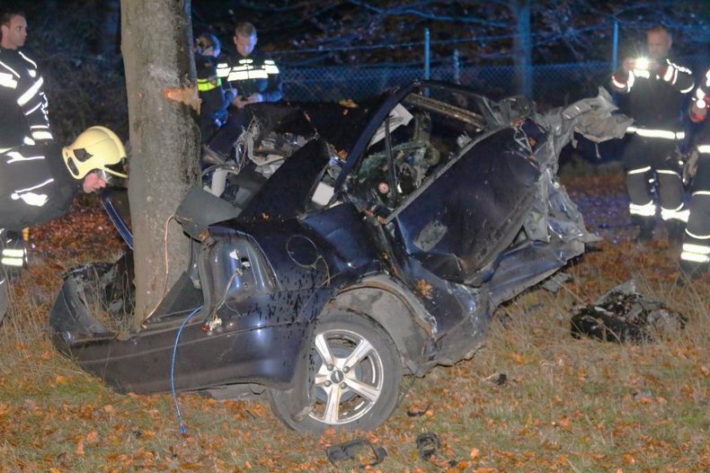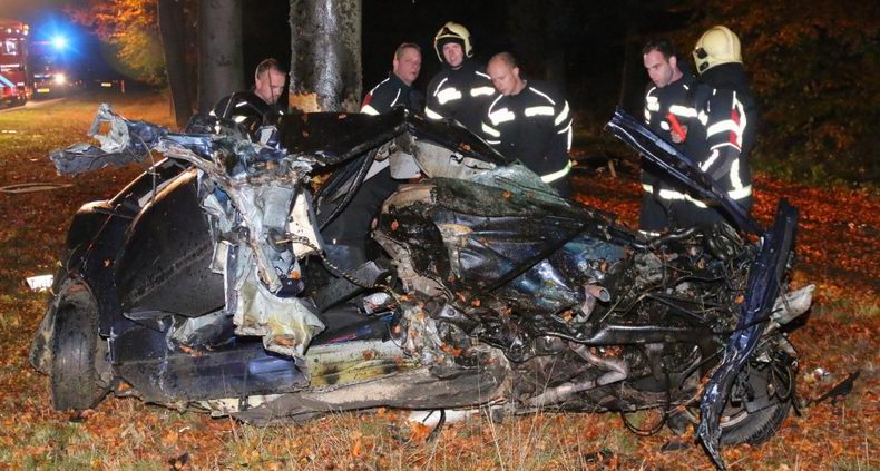 | Een 25-jarige man uit Stadskanaal heeft in de nacht van donderdag op vrijdag tijdig een blik beschermengelen opengetrokken. Zijn auto raakte tegen enen bij Odoorn van de N34 en botste na de beruchte ruk an het stuur vol tegen een boom. Het moge een wonder heten dat de man slechts licht letsel opliep en op eigen kracht op de brancard plaats kon nemen, gezien de staat van het wrak van de auto. De VOA deed onderzoek naar de oorzaak van het ongeval. Het verkeer op de N34 ondervond nagenoeg geen hinder van de naweeën van het ongeval. |