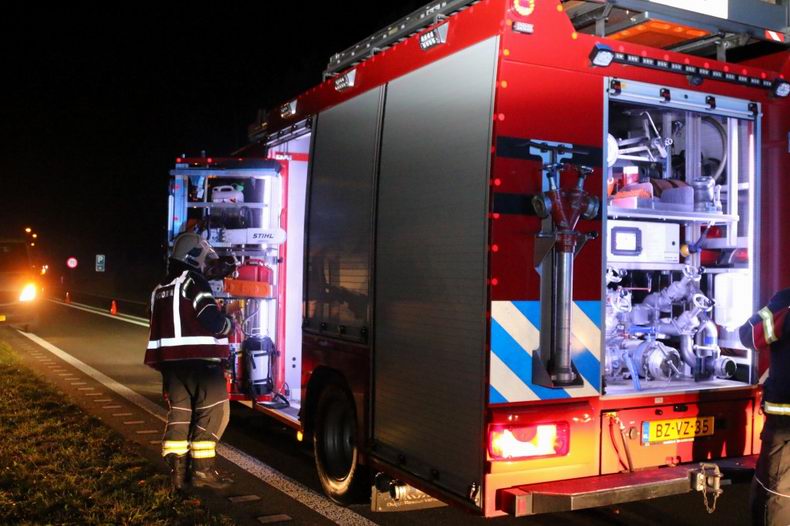 | woensdagmorgen werd de brandweer van Hardenberg verzocht met gepaste spoed naar de N36 te rijden omdat ter hoogte van hectometerpaal 31.3 een "ongeval letsel" zou zijn gebeurd. Aan het einde van het "oude" deel van de N36 -pal voor rotonde De Witte Paal- waren drie auto's onzacht met elkaar in botsing gekomen. Voor de brandweer was geen levensreddend werk weggelegd: de inzittenden waren ongedeerd - op de bestuurster van de voorste auto -een VW Golf- na. Zij werd per ambulance voor nadere controle naar een ziekenhuis vervoerd. De twee voorste auto werden door berger Autax opgehaald: de achterste - een VW Caddy- werd in eigen beheer weggebracht. Het verkeer ondervond nauwelijks hinder van het voorval. |