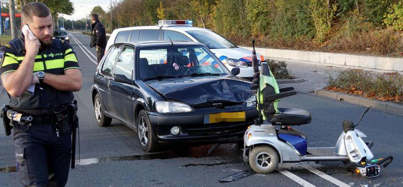 Op de Achthoevenweg is zaterdagmiddag ter hoogte van de bouwmarkt een man op een scootmobiel aangereden door een automobiliste. |