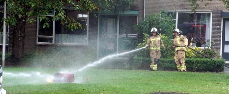 | Een poging om onkruid weg te branden liep zaterdagmiddag uit de hand in de van Toutenburglaan: in plaats van onkruid vloog de gasfles in brand. De brandweer was er snel bij met twee wagens en slaagde er in, de vlammen te doven voor de stalen fles oververhit raakte. Om verder af te koelen werd de gasfles in een kruiwagen vol water gedeponeerd. |