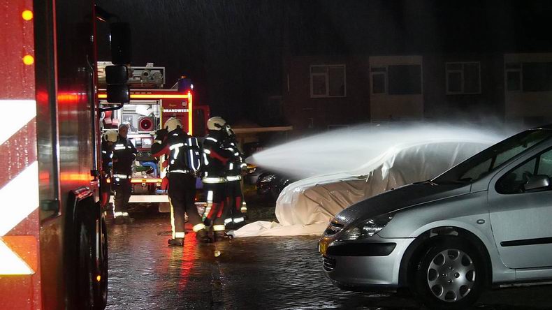 | Rond half drie in de nacht van vrijdag op zaterdag werd aan de Asterstraat in Hoogeveen een autobrand ontdekt. De vlammen sloegen uit een personenauto met Pools kenteken. De brandweer bedekte de auto met een blusdeken en hield deze nat. Een ruime omgeving werd door de politie met een lint afgezet voor een sporenonderzoek. |