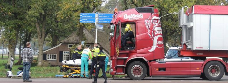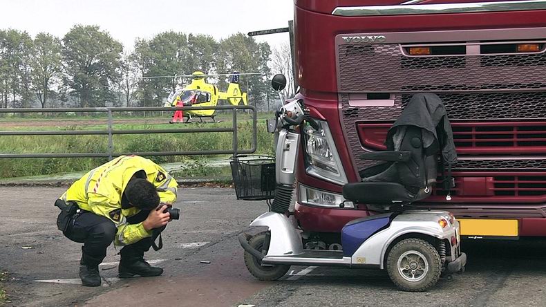 | Hijken: overstekende scootmobilist geraakt door opleggertrekker |