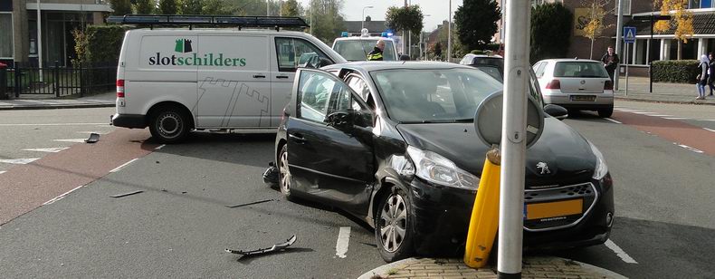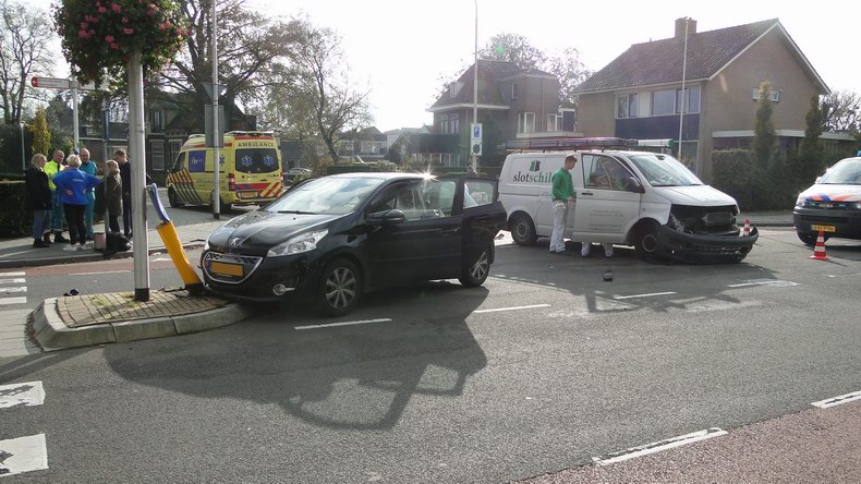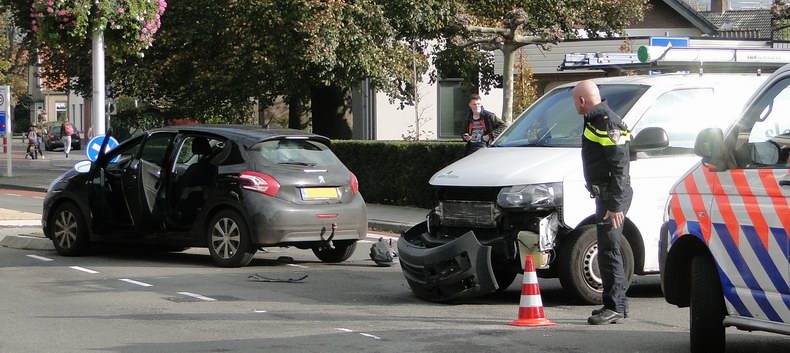 Een Peugeot 208 en een VW Transporter bedrijfsauto liepen in het begin van de donderdagmiddag flinke schade op, toen ze op de kruising Witte de Withstraat - Stationsstraat - Nijenstede in botsing kwamen. |