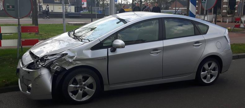 De bestuurder van een Toyota Prius reed zonder op te letten vanaf de Hoofdstraat in Hoogeveen de Willemskade op. Daar reed net op moment een vrachtwagen voorbij die voorrang had. |