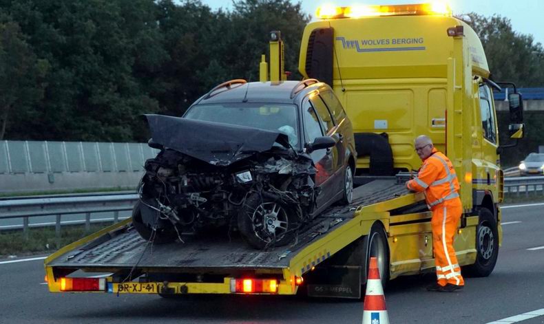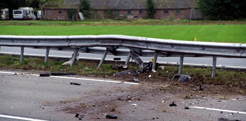 | A28: auto total loss na klap tegen vangrails |