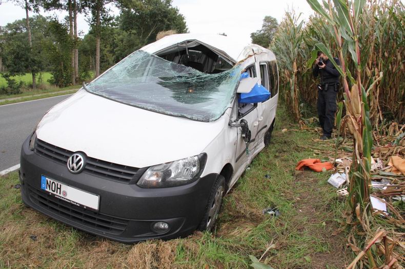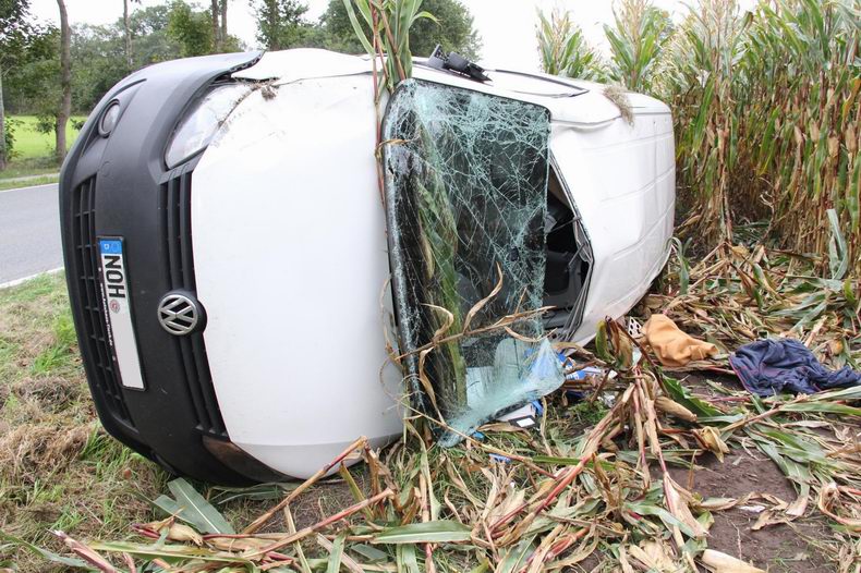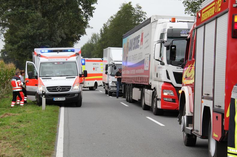 | Maandagmiddag tegen twee uur werden de brandweer van Hoogstede en van Wilsum gealarmeerd vanwege een ernstig verkeersongeval op de Wilsumer Straße in Hoogstede. Het ongeval ontstond toen een 83-jarige bestuurster met haar VW Golf van de Vechtetalstraße in de richting van Emlichheim de Wilsumer Straße over wilde steken. Ze zag daarbij echter een VW Caddy, die uit de richting van Hoogstede kwam, over het hoofd, met voornoemde botsing tot gevolg. Terwijl de VW Golf na de botsing nog aan de overzijde van de weg kwam, begon de Caddy te slingeren en eindigde op zijn linkerkant in een maïsveld - total loss. De bestuursters konden beiden zelfstandig uit de auto’s komen. De bejaarde vrouw had licht letsel; de Caddybestuurster (64) was zwaar gewond. (Beiden wonen in Hoogstede) Ze werden beiden door de bemanningen van de twee toegesnelde ambulances verzorgd en naar een ziekenhuis gebracht. De brandweer kon zich beperken tot het afzetten van de rijbaan en het schoonmaken van het wegdek. De politie doet onderzoek naar de gang van zaken rond de aanrijding. |