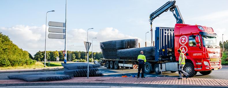 | Rheezerveen: lading betonmatten over de rotonde |