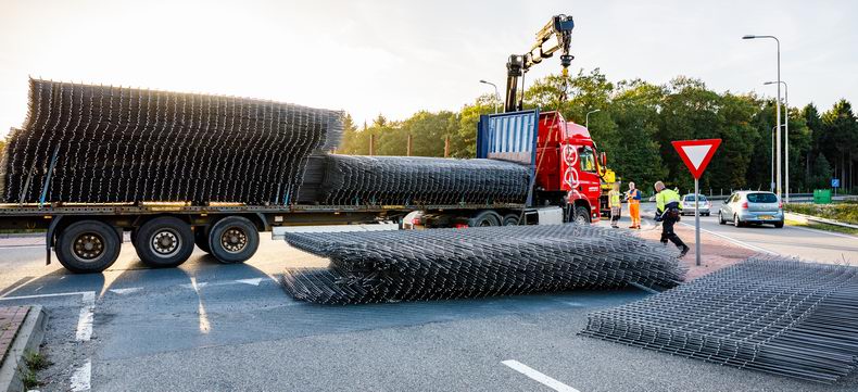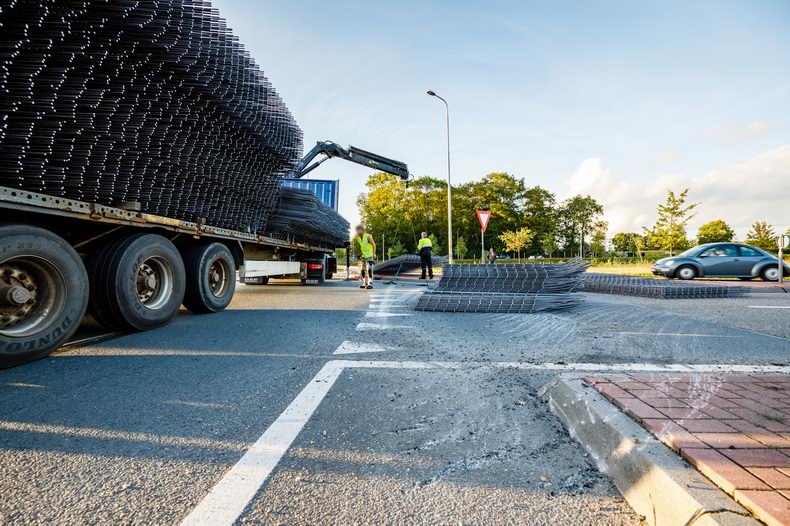 Kort voor het avonduur van dinsdag 3 oktober heeft een vrachtwagen een gedeelte van de lading betonmatten verloren op de rotonde van de Witte Paal ter hoogte van de aansluiting van de N34. |