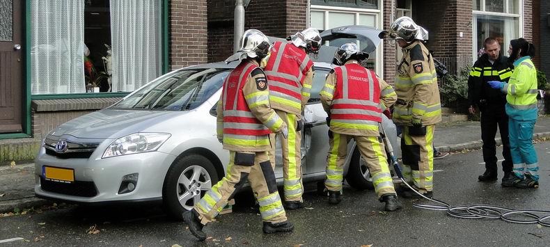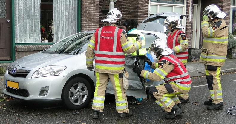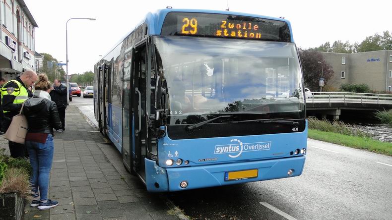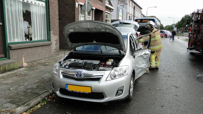 | Rond kwart voor twaalf donderdagmorgen werd de brandweer van Dedemsvaart opgeroepen vanwege een verkeersongeval. Ver hoefde men niet te rijden: het ongeval was op een steenworp van de kazerne gebeurd: op de kruising van de Sportlaan met de Hoofdvaart. De bestuurster van een Toyota Auris hybride-auto, die uit de richting van het centrum kwam, had verzuimd voorrang te verlenen aan een Syntus lijnbus, die van de Sportlaan de Hoofdvaart op reed. De bus raakte de Toyota in de flank ter hoogte van de bestuurstersstoel, waardoor het voorportier klem kwam te zitten. Aan de brandweer de taak de deur los te wrikken. Dat lukte met een hydraulische spreider, waarna de bestuurster uit kon stappen en voor onderzoek naar de ambulance liep. De buschauffeur moest vanwege de schade (twee kapotte ruitjes rechts-voor en de gedeukte bumper) de rit naar Zwolle afbreken, waarop een collega de rit met een andere bus overnam. |