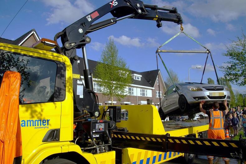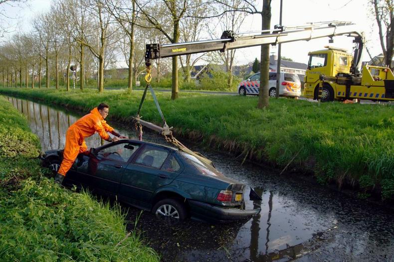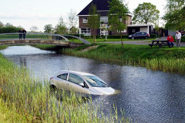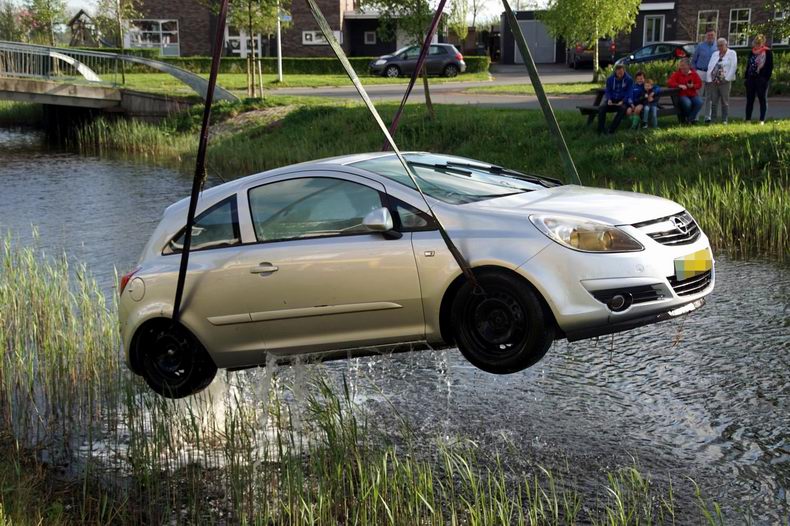 | De bewoners van een woning aan het Stuurboord keken maandagmiddag wel even raar op toen plots de auto van de oprit het water in rolde. Vermoedelijk was men vergeten de handrem aan te trekken waardoor de Opel Corsa in het midden van het water terecht kwam. Door het mooie weer waren veel mensen op de been om de bergingsoperatie te bekijken. Een medewerker van bergingsbedrijf Hooikammer hees zichzelf in een waadpak om zo de auto aan de kraan vast te maken. Onder toeziend oog van de eigenaar werd de auto op het laadplateau gezet. Nadat er nog enkele goederen uit de auto waren gehaald werd deze afgevoerd. De eigenaar zal op zoek moeten naar een ander vervoermiddel. De schade aan de bijna elf jaar oude auto zal te groot zijn voor reparatie |