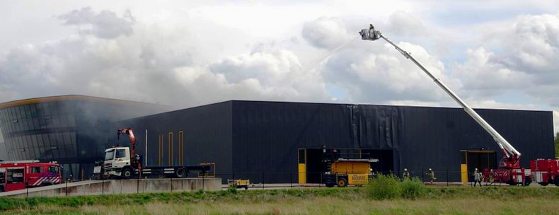 | Bij Kors Hoogwerksystemen aan de Oostmeentherand is maandagmiddag in de opslagloods brand ontstaan. Bij de grote brand, waarbij meerdere brandweerkorpsen werden opgeroepen, vielen geen gewonden. Eén persoon werd ter plekke behandeld vanwege rookinhalatie. Grote rookwolken trokken over de A32. Politieagenten lieten het verkeer dan ook met gepaste snelheid rijden. De brandweer van Steenwijk kreeg bij het bestrijden van de brand hulp van de korpsen van Vollenhove, Zwartsluis, Oldemarkt, Meppel, Havelte en Vledder. Na ruim een uur had de brandweer de brand onder controle. Over de oorzaak van de brand is nog niets bekend. De schade aan het pand is groot. |