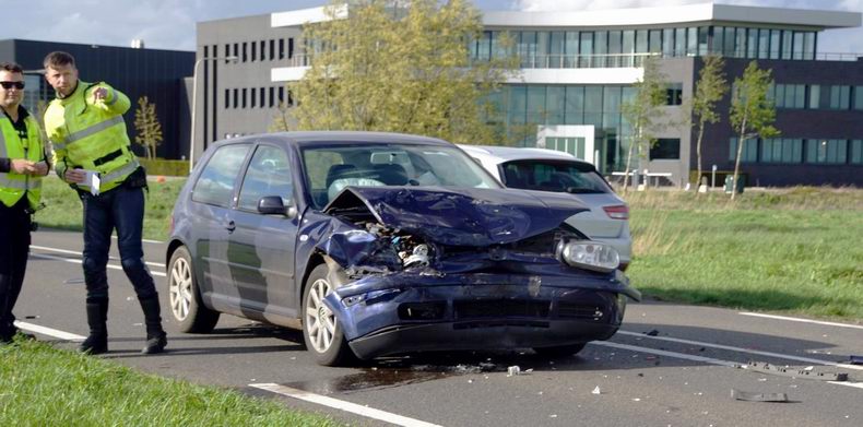 | Op de Nieuwe Weg zijn donderdag aan het einde van de middag een viertal auto’s met elkaar in botsing gekomen. Door enorme drukte was er een file ontstaan, die te laat werd opgemerkt door de bestuurder van een blauwe Volkswagen Golf. Deze auto botste dan ook met een flinke vaart achterop een grijze Peugeot. Door deze botsing schoot de Peugeot de berm in en kwam net op tijd voor het water tot stilstand. Daarna werd of door de grijze of door de blauwe auto een Hyundai geraakt die weer op zijn voorganger botste. Ondanks de enorme schade aan de voertuigen raakte geen enkele automobilist gewond. Wel werden zij gecontroleerd door ambulancepersoneel. In verband met het ongeval werd de Nieuwe Weg in de richting van Hasselt afgesloten voor het verkeer. Bergingsbedrijf Hooikammer heeft drie van de vier voertuigen afgevoerd vanwege schade. De weg werd om 19:30 uur weer volledig vrijgegeven |
