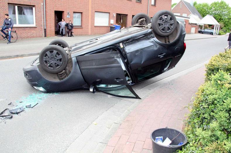 | Neuenhaus (D): auto over de kop na botsing |