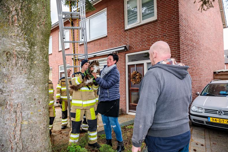 | Ommen: brandweer haalt bejaarde kat uit boom |