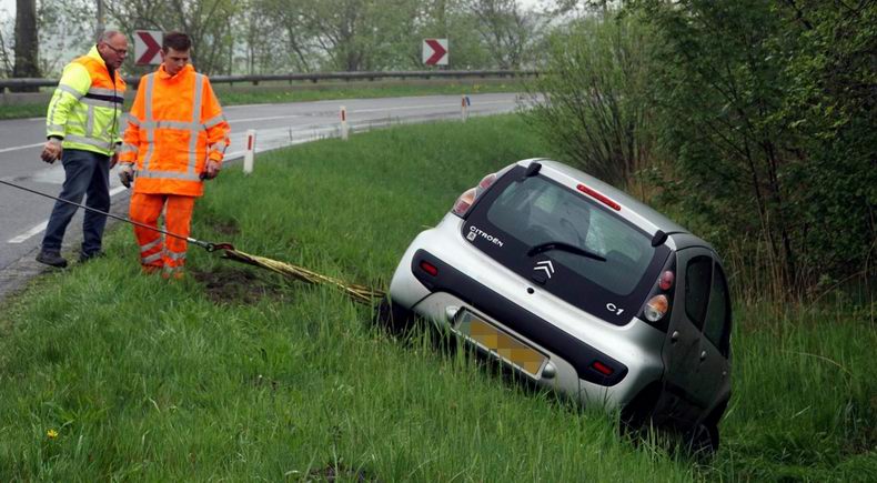 Daar was een auto hard in de berm beland. De bestuurster reed vanuit Hasselt richting de Lichtmis, toen ze in de bocht bij ’t Rakje in een slip raakte waarna haar auto om zijn as tolde en achterwaarts de berm in gleed. Daarna rolde de auto om kwam weer op de wielen tot stilstand. Enkele automobilisten die het ongeval zagen gebeuren schoten de bestuurster direct te hulp. De opgeroepen brandweer hoefde niet levensreddend in actie te komen. Wel regelden zij tijdelijk het verkeer. De vrouw was door de omstanders uit de auto geholpen en werd onderzocht door ambulancepersoneel. Na controle bleek dat ze slechts een zere knie overhield aan het ongeval. Bergingsbedrijf Hooikammer takelde de Citroën C1 uit de berm en voerde deze af. Tijdens de bergingswerkzaamheden werd het verkeer om beurten door politieagenten langs het ongeval geleid |