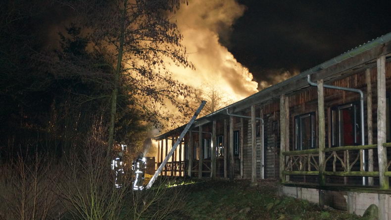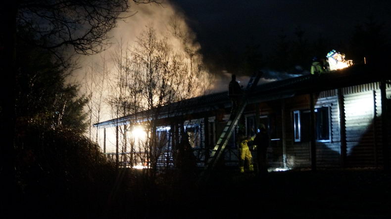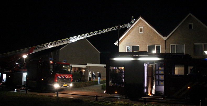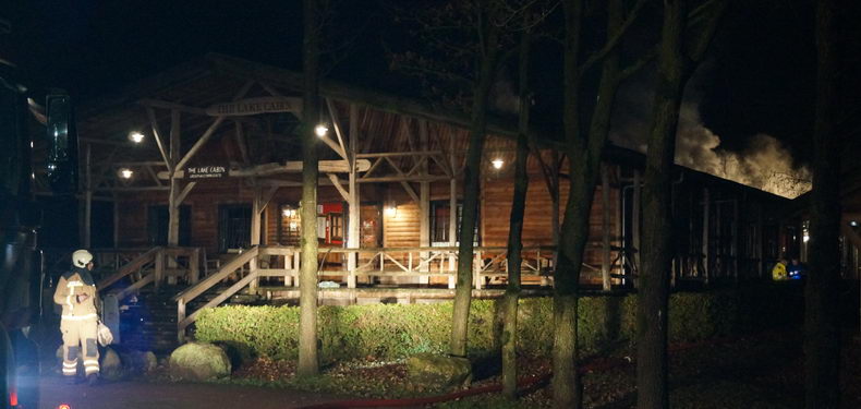 | Een gezelschap dat aanwezig was in het achterste gedeelte van het houten groepsaccomodatiegebouw The Lake Cabin op het terrein van Recreatiepark Ermerzand ontdekte dat er in het plafond van het gebouw brand was uitgebroken. Een poging het vuur te doven met een brandblusser mislukte, waarna men het gebouw verliet en 112 belde. Er waren al snel vlammen uit het metalen dak rond de schoorsteen te zien en er werd opgeschaald naar "middelbrand" om meer brandweermensen en -materieel in te kunnen zetten. Het dak moest worden opengeslepen met een slijptol om de vuurhaard te kunnen bereiken. Tegen 21:00 uur was men de brand meester. Burgemeester Bert Bouwmeester van de gemeente Coevorden kwam langs om zich persoonlijk op de hoogte te laten brengen. |