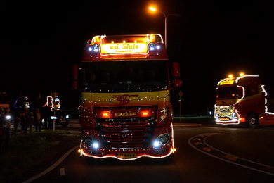 | De jaarlijkse “Trucks by Night”, georganiseerd door Chauffeursvereniging De Lichtmis, telde zaterdag 15 december een recordaantal deelnemers. Maar liefst 45 verlichte vrachtwagens trokken door de straten van Staphorst, Rouveen, Genemuiden, Hasselt, Oudleusen en Nieuwleusen. Ondanks de kou stonden er vele mensen langs de route om één van de grootste verlichte optochten van Noord-Nederland te bekijken. Op de parkeerplaats van Sportclub Genemuiden en op de wintermarkten van Oudleusen en Nieuwleusen werd een stop gemaakt om de mensen een kans te geven de verlichte vrachtwagens goed te bewonderen. Ook werd de snelheid van de rondrit op een paar plaatsen aangepast, onder andere bij woonzorgcentra in Genemuiden, Hasselt en Nieuwleusen. De organisatie bedankt alle chauffeurs, vrijwilligers en natuurlijk het publiek die dit evenement tot een succes hebben gemaakt. |