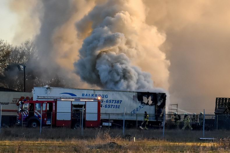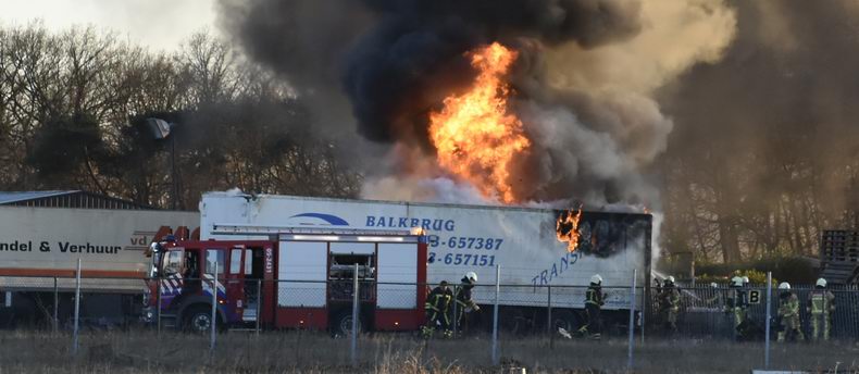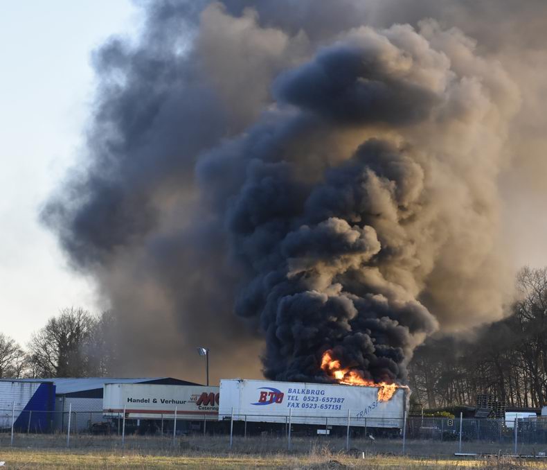 De hulpdiensten zijn maandag 19 maart rond kwart over zes ’s avonds uitgerukt naar het voormalig terrein van Lenferink aan de Delmaweg in Geesteren, waar een oplegger in brand stond. |