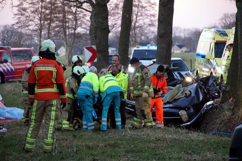 | Bij een eenzijdig ongeval op de Schoonveldeweg in Koekange zijn maandagavond twee gewonden gevallen. Beide inzittenden moesten door de brandweer worden bevrijd, nadat hun oldtimer Mercedes Benz 200D in een bocht tegen een boom botste. Vanwege de ernst van het incident werd een traumahelikopter en drie ambulances naar de ongevalslocatie gestuurd. De slachtoffers zijn met spoed overgebracht naar het Isala ziekenhuis in Zwolle. De trauma-arts, die met één van de ambulances meereed, werd later weer opgehaald vanaf het Zwolse ziekenhuis. De oorzaak van het ongeval zal worden uitgezocht door de Team Verkeersongevallenanalyse. Bergingsbedrijf Hooikammer heeft de bijna 44 jaar oude Mercedes Benz 200D afgevoerd. De Schoonveldeweg was gedurende het ongeval, het politieonderzoek en de berging afgesloten voor het verkeer. |