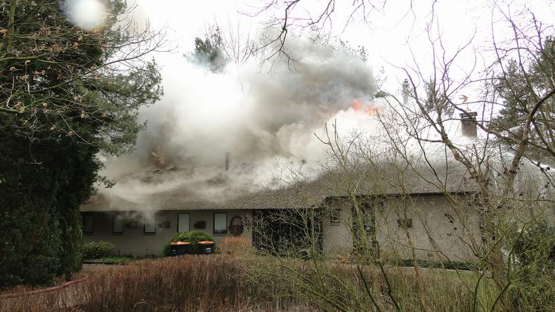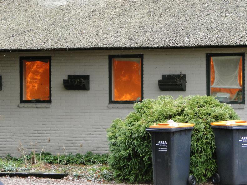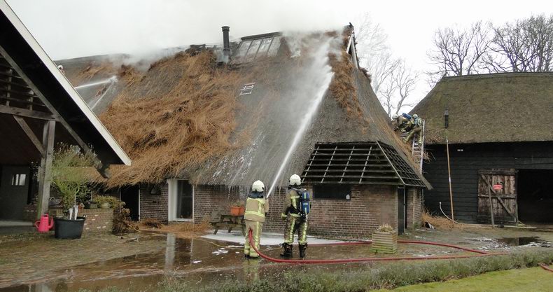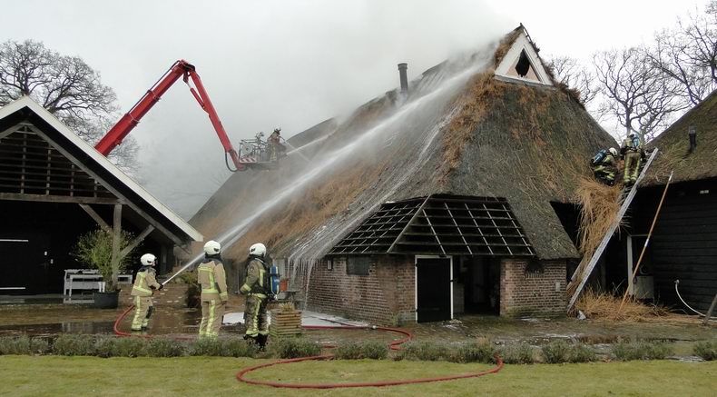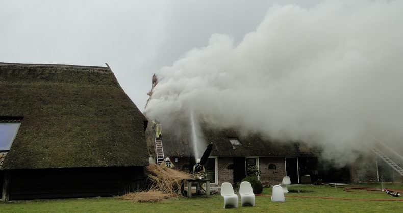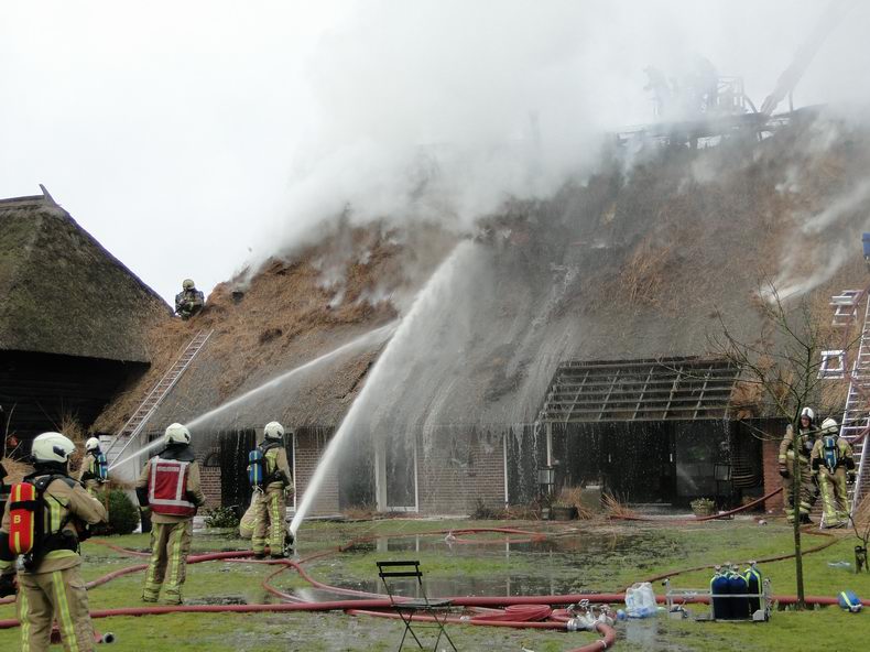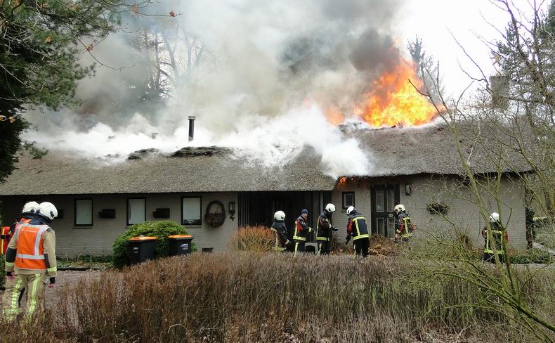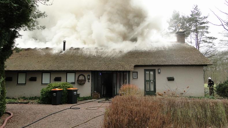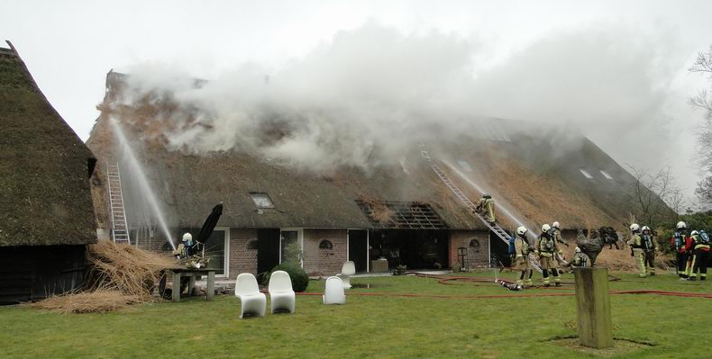 | Donderdagmorgen even na half elf waarschuwden twee medewerkers van AREA de bewoners van een vrijstaande woning aan de Noorderweg in Tiendeveen, dat er rook uit het rieten dak kwam. De aanwezigen konden zich met vijf honden tijdig in veiligheid brengen. De Hoogeveense brandweer rukte uit met groot materieel en werd qua waterwinning geassisteerd door collega's uit andere Drentse korpsen, terwijl de brandweer uit Hardenberg de hoogwerker inzette. Desondanks bleek het een verloren race tegen de Rode Haan; het pand brandde helaas volledig uit... |