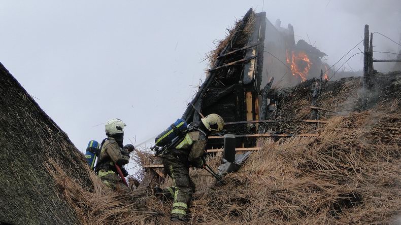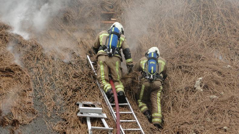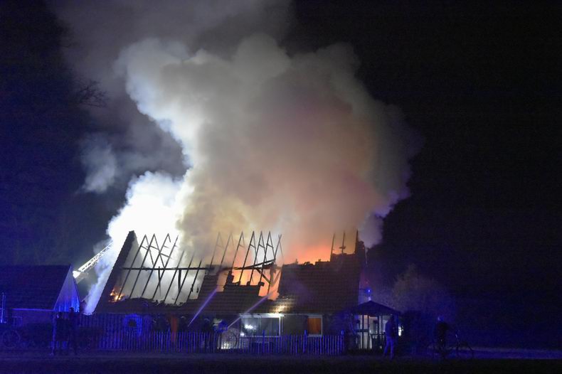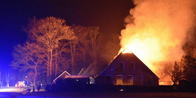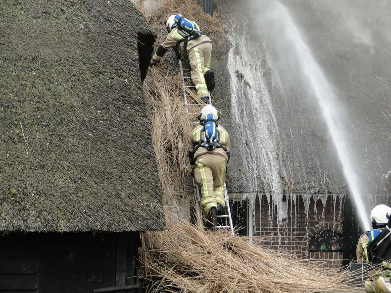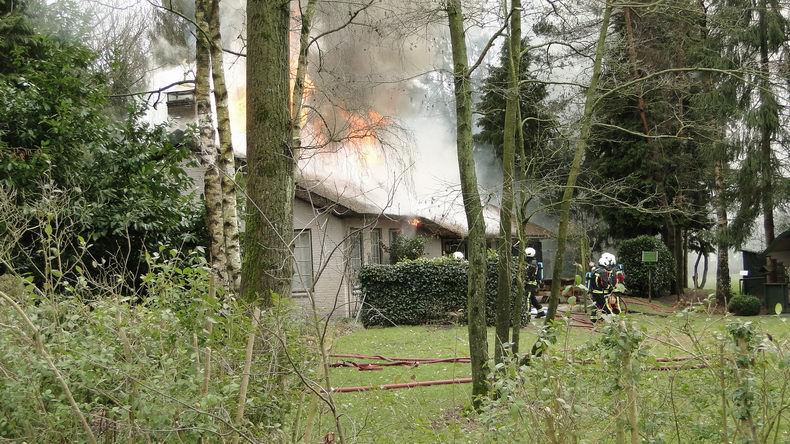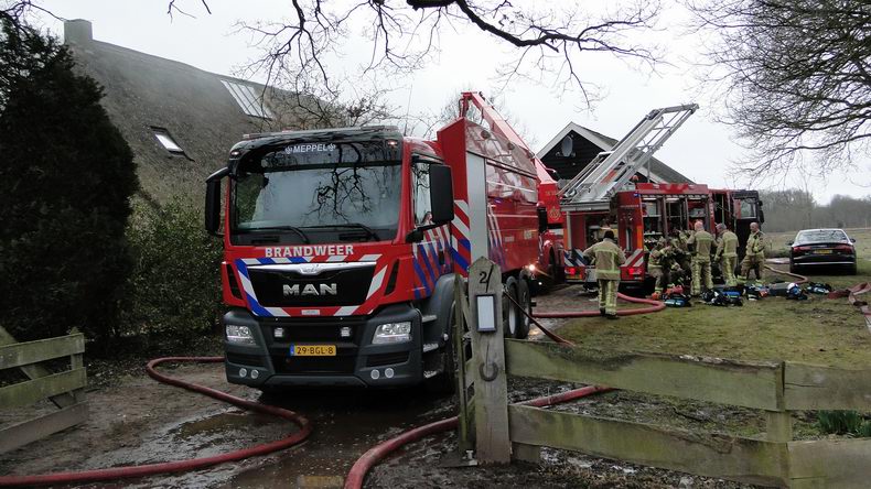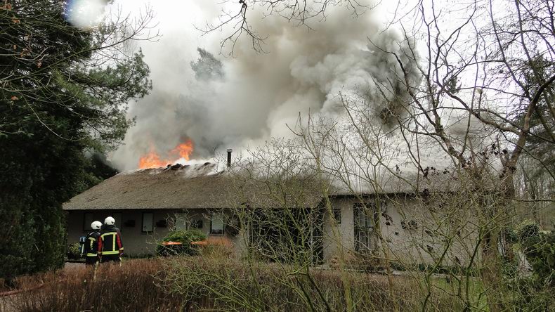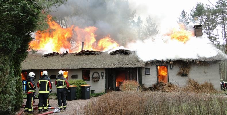 | Donderdagmorgen even na half elf waarschuwden twee medewerkers van AREA de bewoners van een vrijstaande woning aan de Noorderweg in Tiendeveen, dat er rook uit het rieten dak kwam. De aanwezigen konden zich met vijf honden tijdig in veiligheid brengen. De Hoogeveense brandweer rukte uit met groot materieel en werd qua waterwinning geassisteerd door collega's uit andere Drentse korpsen, terwijl de brandweer uit Hardenberg de hoogwerker inzette. Desondanks bleek het een verloren race tegen de Rode Haan; het pand brandde helaas volledig uit... |