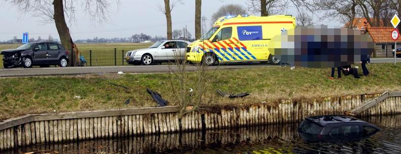 Op de Vaartweg is zaterdagmiddag een auto, na een aanrijding met een andere auto, te water geraakt. In het voertuig zaten twee volwassenen en vier kinderen. Eén van de kinderen is voor controle overgebracht naar het ziekenhuis, de anderen kwamen met de schrik vrij. |