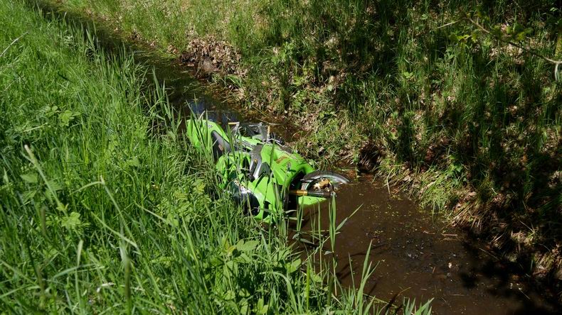 | Hollandscheveld: motorrijder slipt sloot in |