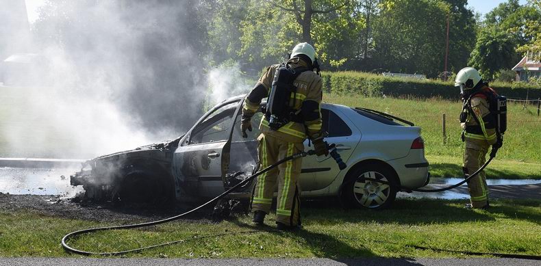 Een auto is zondagmiddag op de Vriezenveenseweg in Wierden helemaal uitgebrand. |