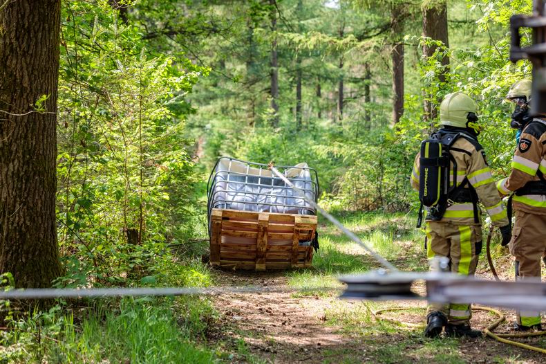 | Junne: IBC-containers met mogelijk drugsafval op bospad gedumpt |