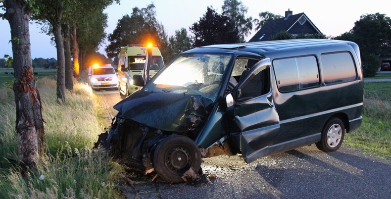 | Rond half vijf in de nacht van zaterdag op zondag werd de hulpverlening gealarmeerd: er was een personenbusje op de Doorlopendedijk in Holten tegen een boom gebotst, waarbij de bestuurster gewond was geraakt. Naar verluidt was de vrouw uitgeweken voor een wild dier en verloor daarbij de macht over het stuur. De klap was dermate hard dat de kruin uit de boom brak. De bus was onherstelbaar beschadigd. Het slachtoffer is per ambulance naar een ziekenhuis overgebracht |
