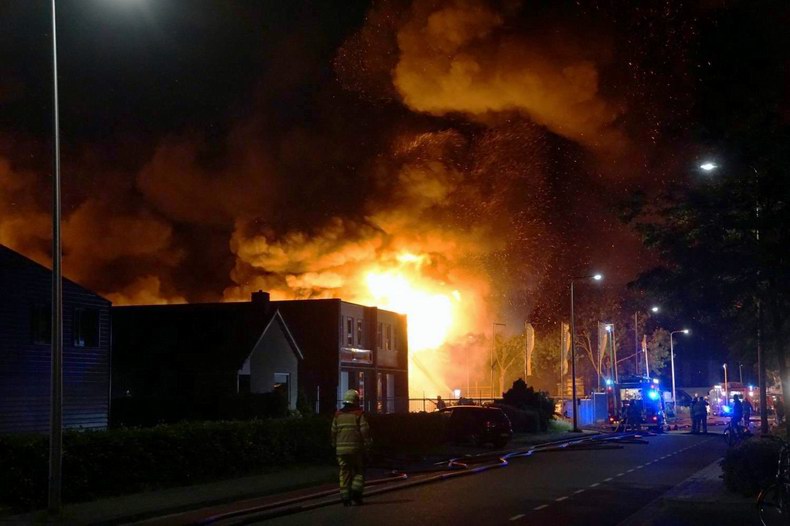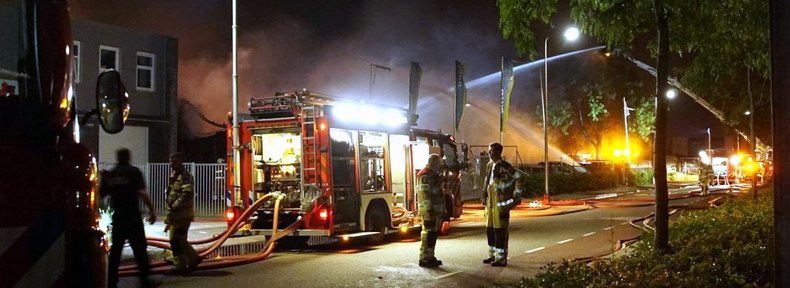 Een zeer grote brand heeft afgelopen nacht het bedrijfspand van een autobandenbedrijf verwoest. |