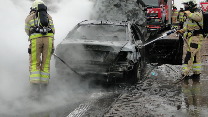 | N34: Mercedes volledig uitgebrand op afrit Gramsbergen |