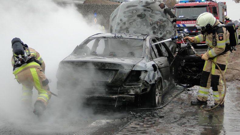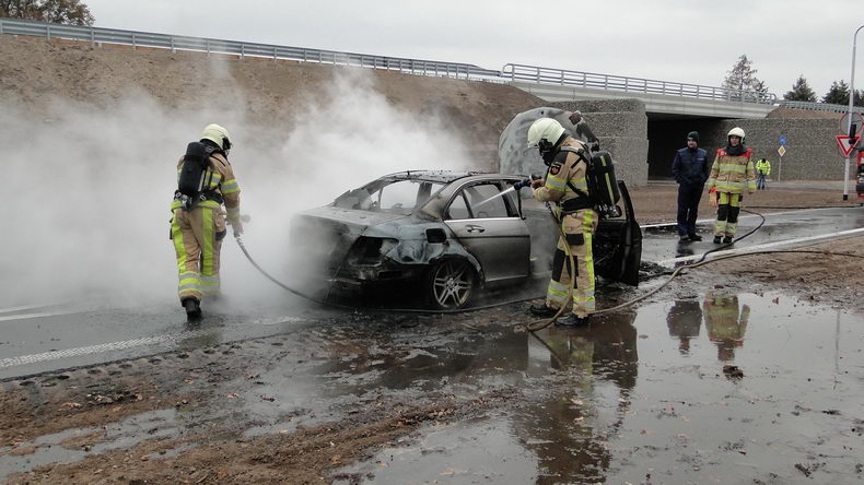 De bestuurder van een Mercedes personenauto ontdekte, toen hij de afrit naar Ane/Gramsbergen nam, dat er verontrustend veel rook uit zijn auto kwam. Kort nadat hij de auto stilzette sloegen de vlammen er al uit. |