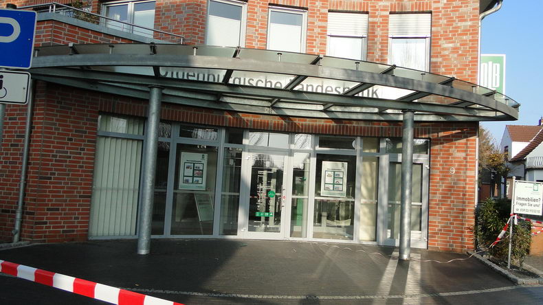 Vrijdagmorgen rond 05:00 uur werd een geldautomaat in een filiaal van de Oldenburgische Landesbank aan de Schmiedestraße in Lathen opgeblazen. |