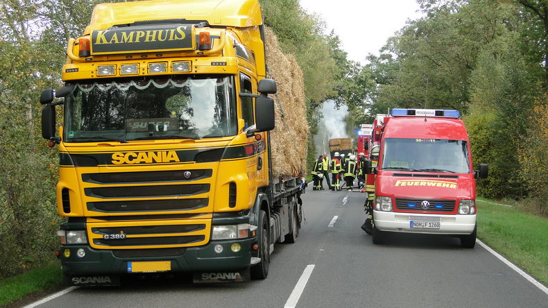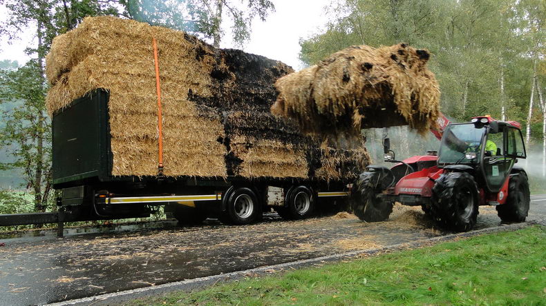 Weusten (D): Nederlandse aanhangwagen vol stro in brand |