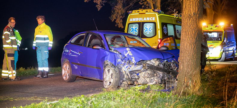 | Beerzerveld: auto ramt boom: twee gewonden |