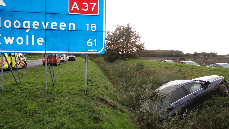 | De twee jonge mannen die zaterdagmiddag tegen half zes bij Wachtum van de A37 raakten, mogen van geluk spreken dat ze er zonder letsel van af gekomen zijn. De twee reden in een grijze Marcedes C320CDI in de richting van Hoogeveen, toen ze door nog onopgehelderde oorzaak in de berm belandden en in de bermsloot tot stilstand kwamen. Ze zijn in een ambulance nagekeken waarbij geen verwondingen werden vastgesteld en werden in een ziekenhuis nader gecontroleerd. De zwaar beschadigde Mercedes werd geborgen door de firma Koolen. |