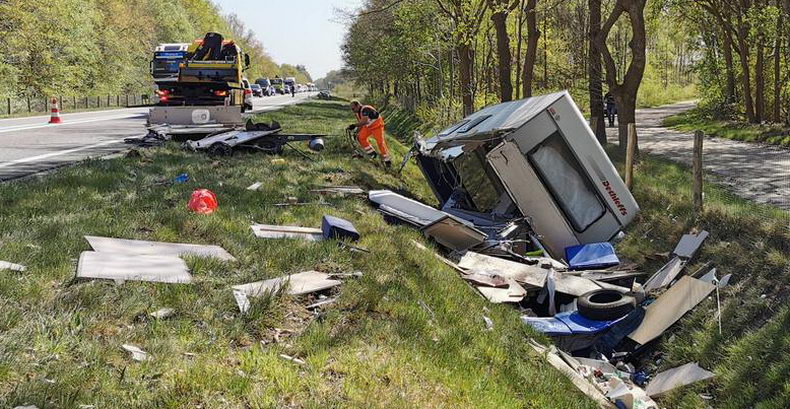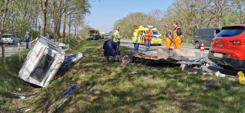 | N48: gewonde naar ziekenhuis en caravan aan puin door aanrijding bij Zuidwolde |