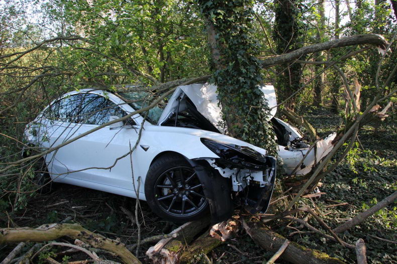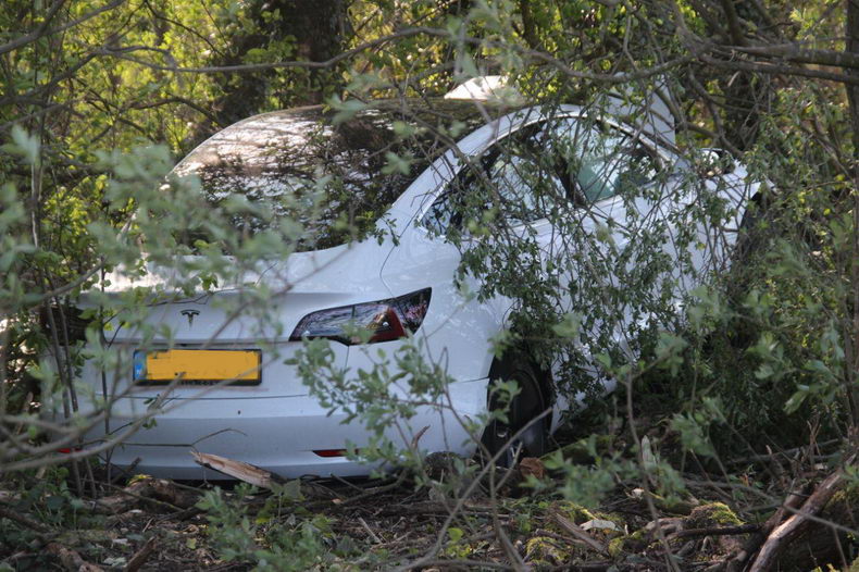 | Enter: Tesla vliegt van de afrit tegen een boom |