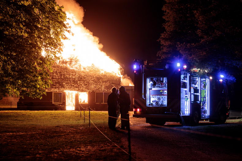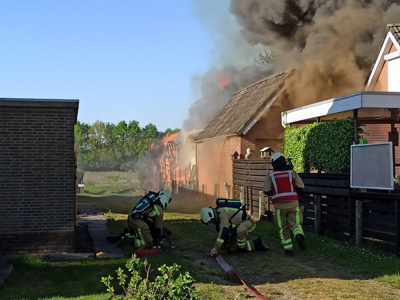 | De brandweer is in de eerste minuten van maandag 20 april uitgerukt naar het begin van de Lemelerweg bij Lemele, ter hoogte van de Sogensteeg. Rond middernacht ontstond hier een verwoestende brand in een rietgedekte woonboerderij. Bij aankomst van de eerste brandweerwagen stond de boerderij al volledig in brand. De brand is mogelijk ontstaan door een houtkachel. De brandweer startte direct met blussen en legde ook een grootwatertransport aan. Maar er was geen redden meer aan:: een half uur na de oproep stond er alleen nog een brandend geraamte. Rond kwart voor één explodeerde een gasfles en kort daarna kreeg het vuur vat op wat jachtmunitie. De bewoner was ten tijde van de brand thuis, maar kon de woning tijdig verlaten en bleef fysiek ongedeerd. Hij werd opgevangen door de brandweer. Later is burgemeester Hans Vroomen ook gearriveerd om de man te steunen. Een loonbedrijf uit de omgeving sloopte de ruïne met een mobiele kraan, zodat de brandweer de resten goed kon nablussen. |