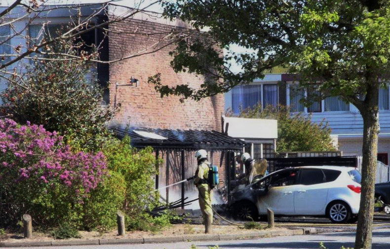 Rond half één woensdagmiddag werd de brandweer van Emmen gealarmeerd aangezien er een auto onder een carport in brand stond bij een woning aan de Avekingecamp in de Emmer wijk Angelslo. |